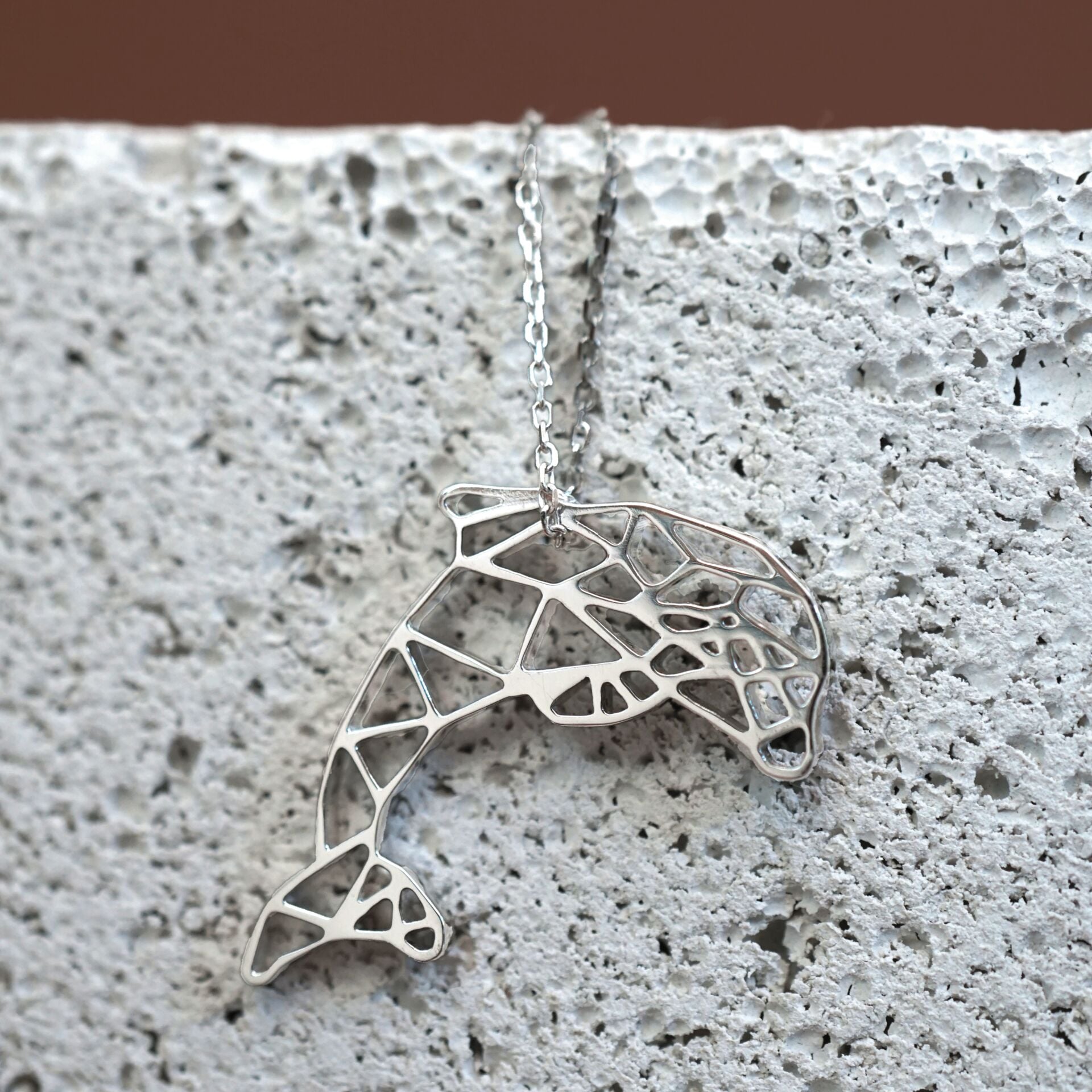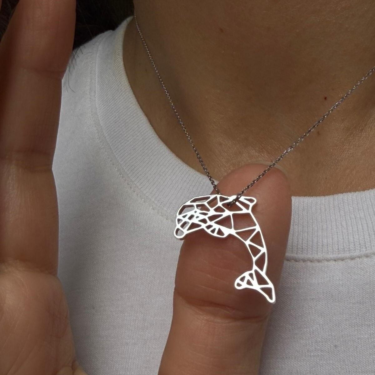 Denizlerin zarif ruhu şimdi boynunda: origami yunus silüet kolye.