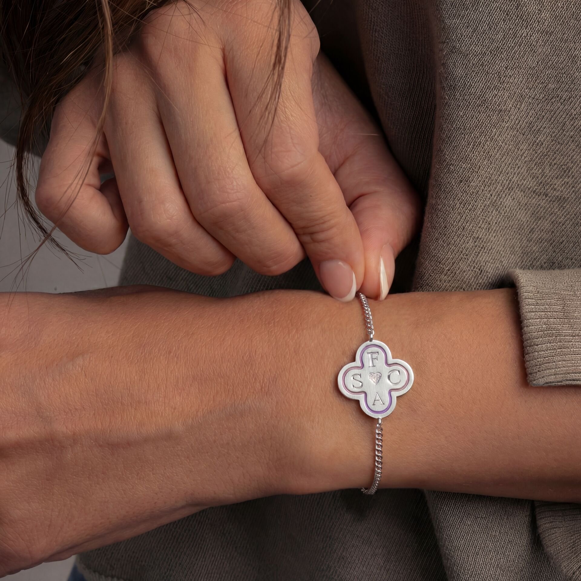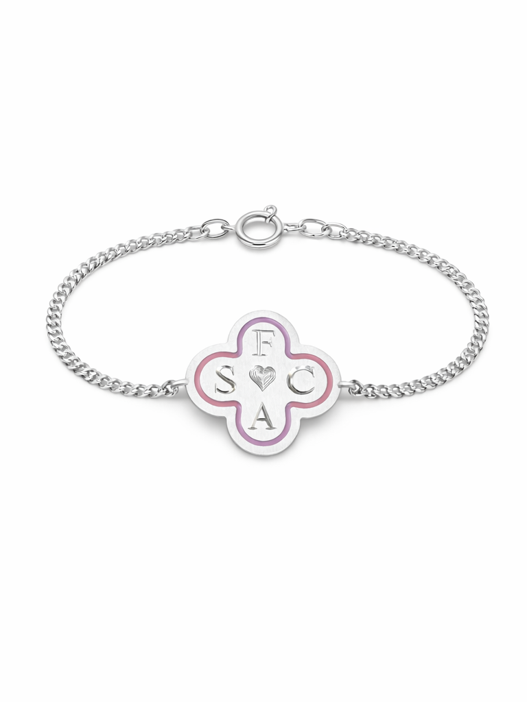 Dört yapraklı yonca formunda tasarlanan bu özel bileklik, geleneksel kalemkâr işçiliği ile titizlikle hazırlanmıştır. Mine detaylı bilekliğin her bir yaprağına 4 harfe kadar kişiye özel kazıma yapılabilir..