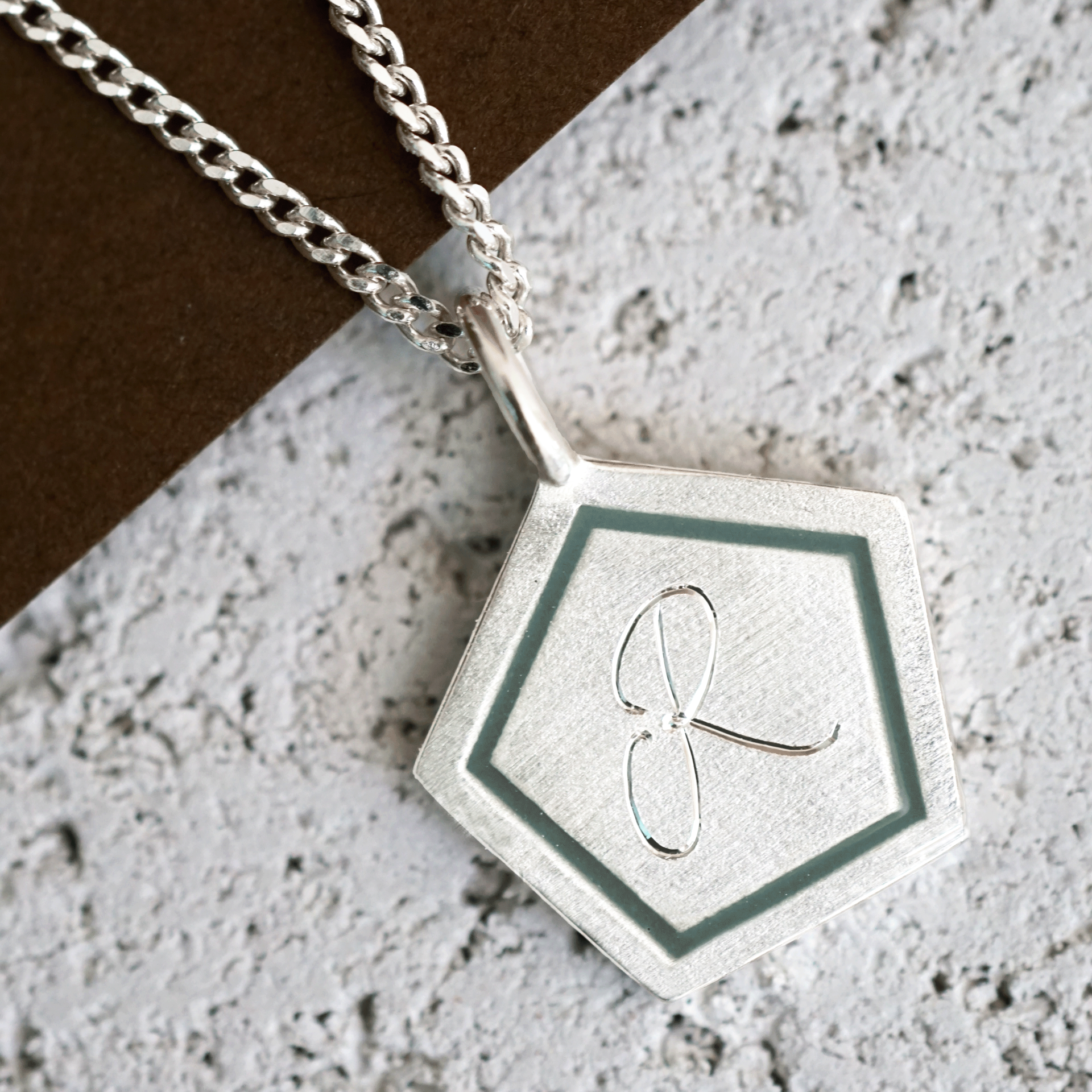 Altıgen Harf Kolye – Mine Detaylı | Gümüş