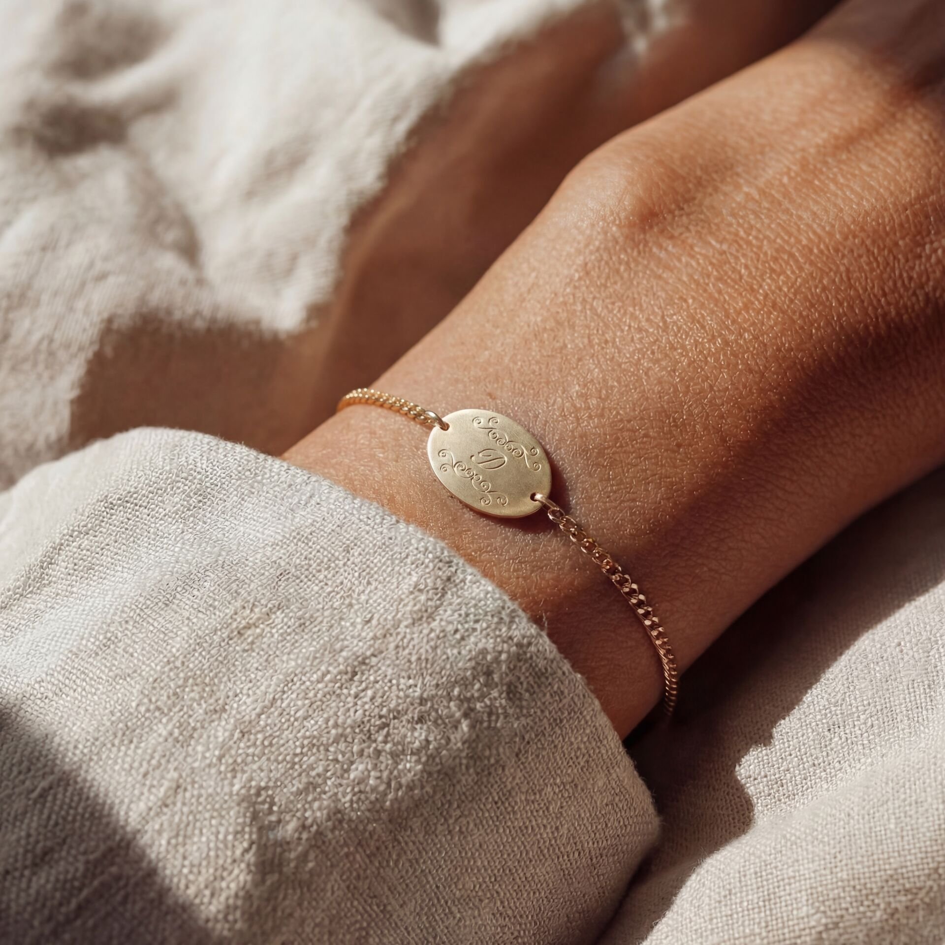 14 ayar altından el işçiliğiyle tasarlanan bu zarif harf bileklik, tamamen size özel hazırlanır. İstediğiniz harf, bilekliğinize özenle işlenir.