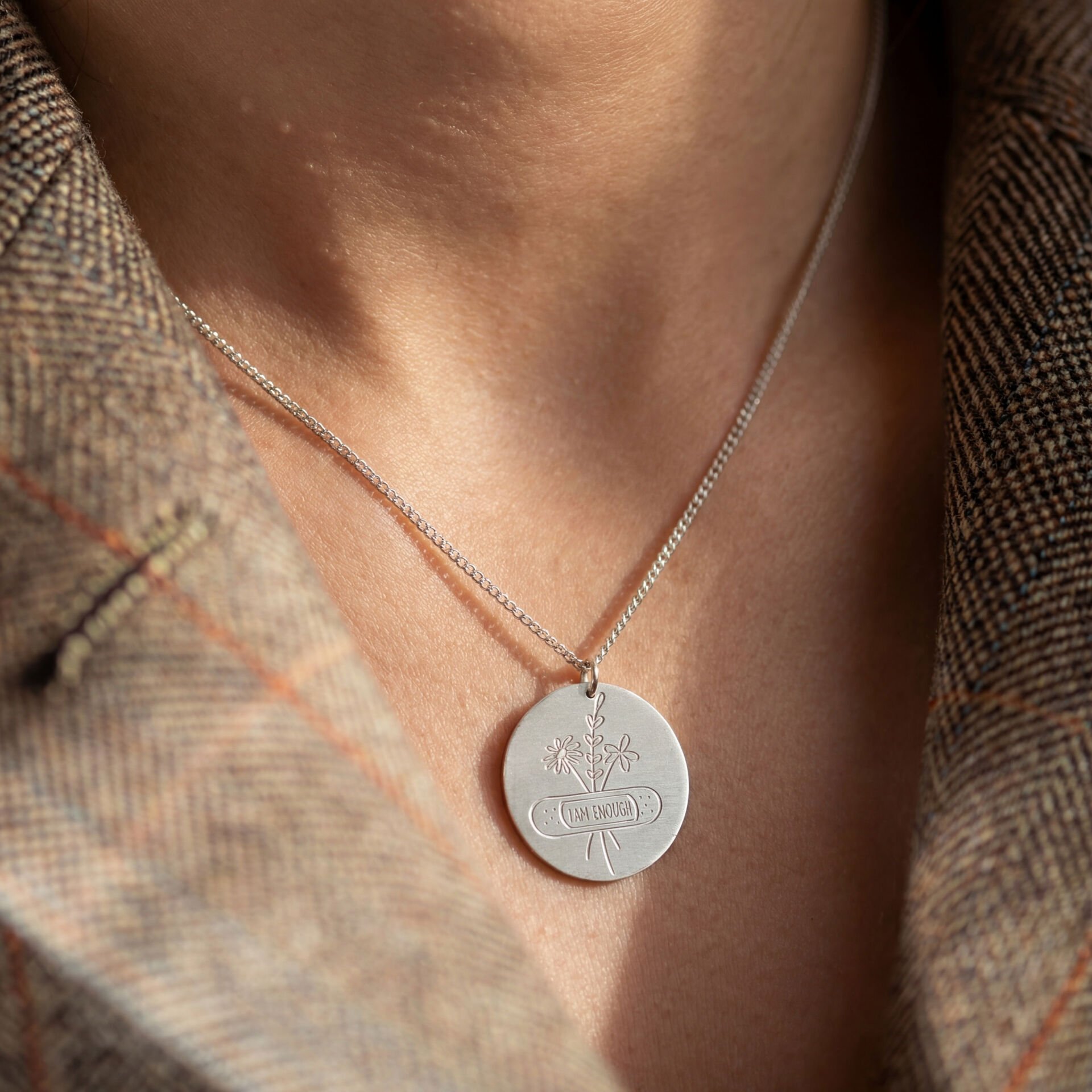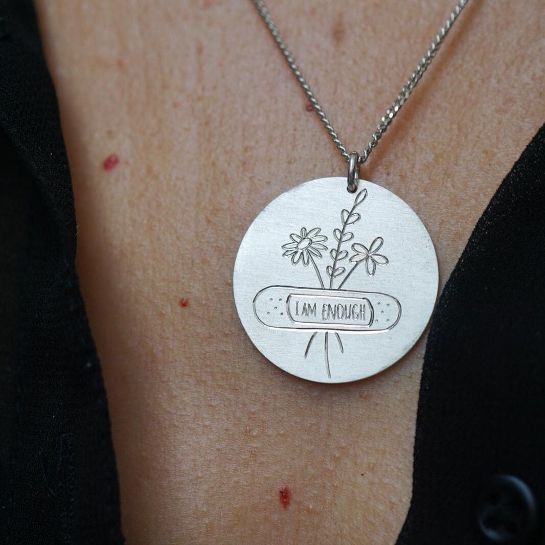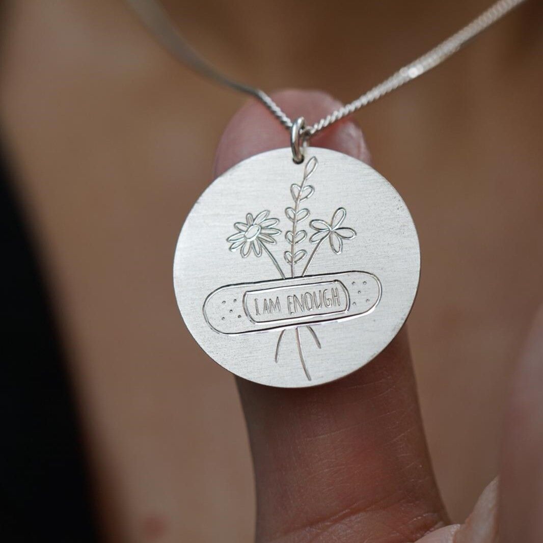 "I am enough" kolyesi, kendi gücünü hatırlamak isteyen kadınlar için özel olarak tasarlandı, geleneksel kalemkâr işçiliği ile özenle işlendi.