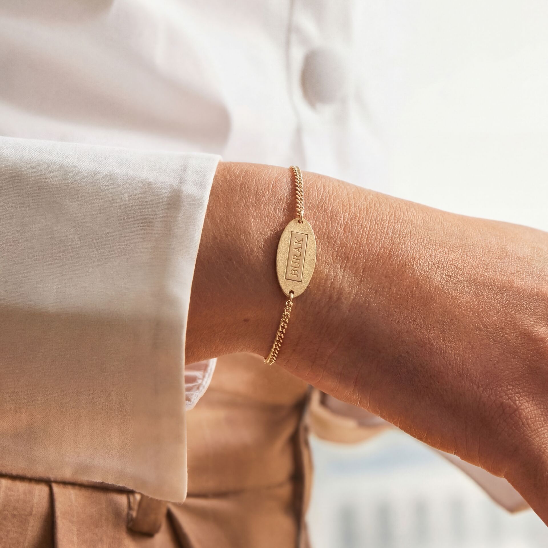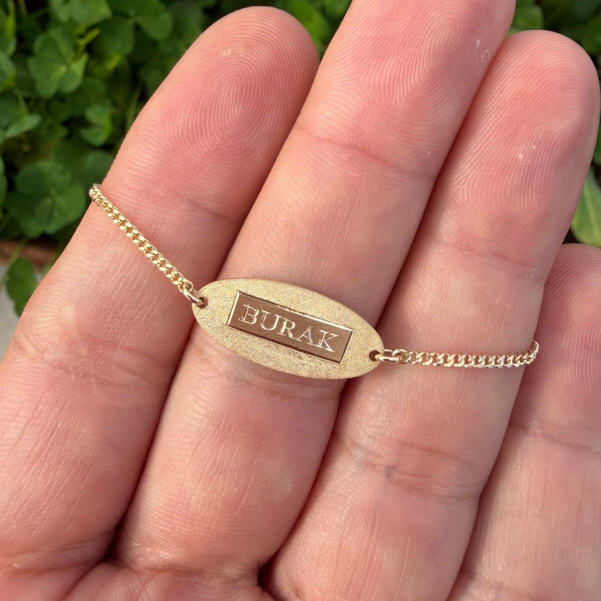 Bu özel tasarım bileklik, kişisel bir dokunuşla adınızı taşıyor. Kalemkar işçiliğiyle ustalıkla isim yazdırabileceğiniz, plaka formundaki tasarımı ile özenle hazırlanmaktadır. Bu bileklik, özel günlerde veya günlük hayatta size eşlik ederek, her zaman sizi özel hissettirecek ve tarzınızı tamamlayacaktır.
