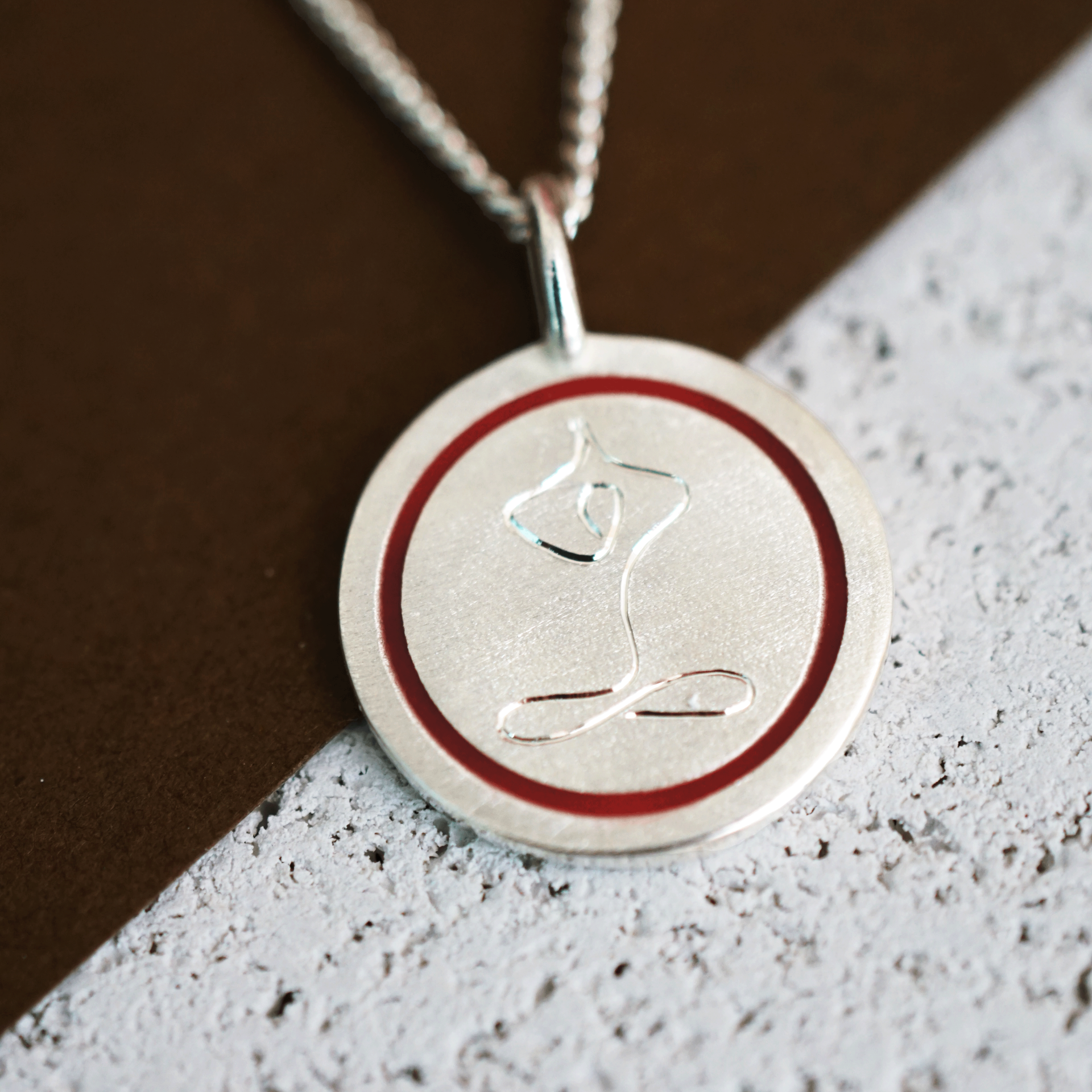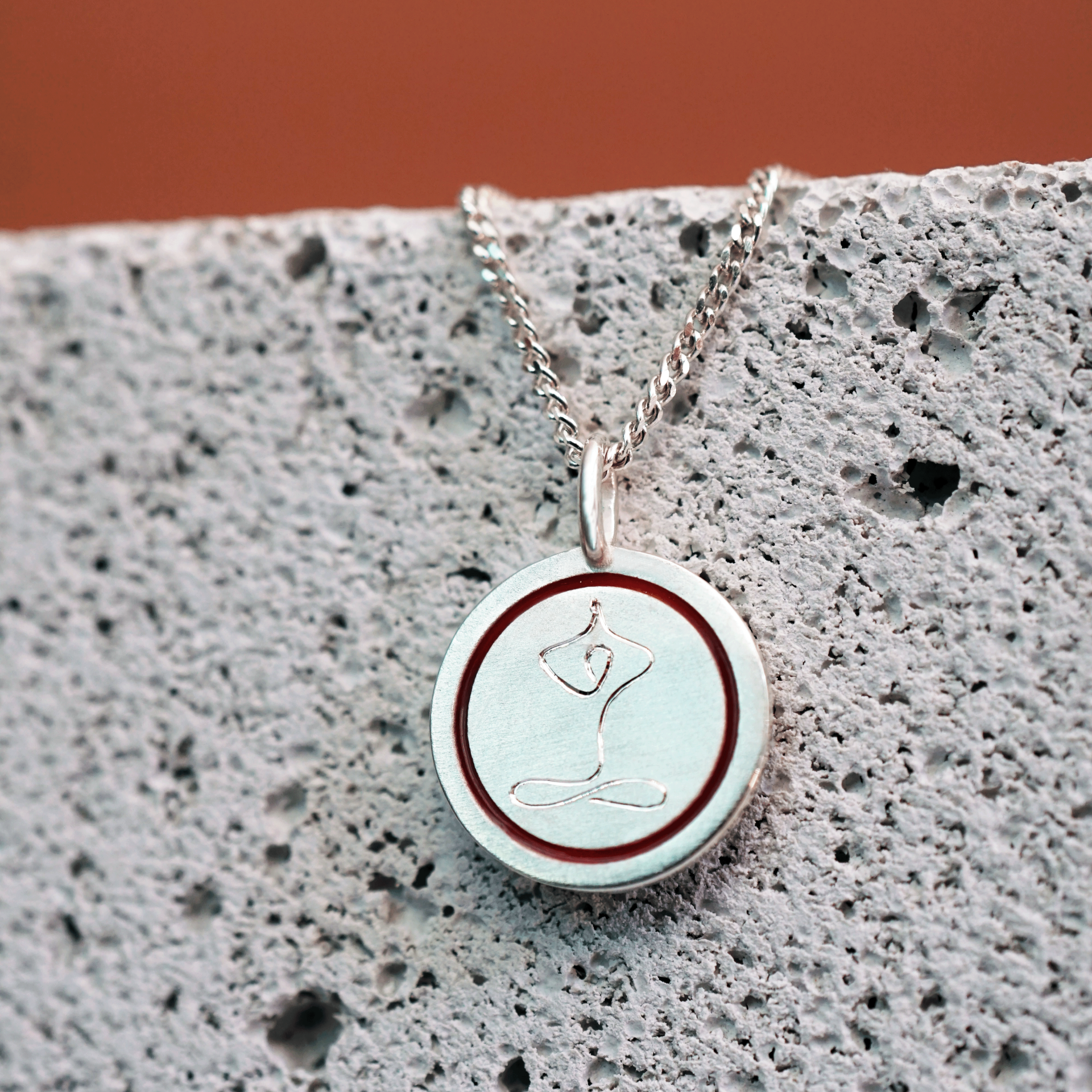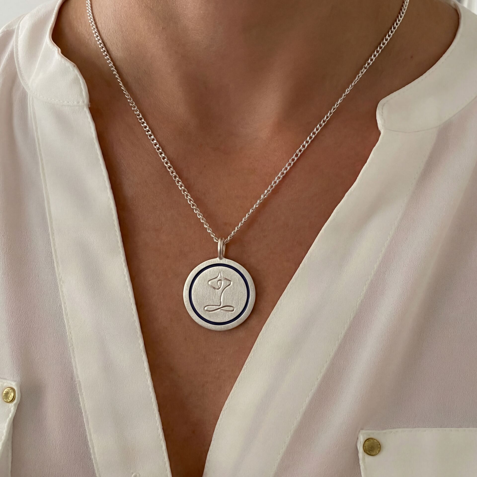 İç huzurunu taşıyan zarif bir detay: Kalemkâr ustasının elinden çıkan bu 925 ayar gümüş kolye, yoga figürüyle dinginliği ve anlamı bir araya getiriyor.
