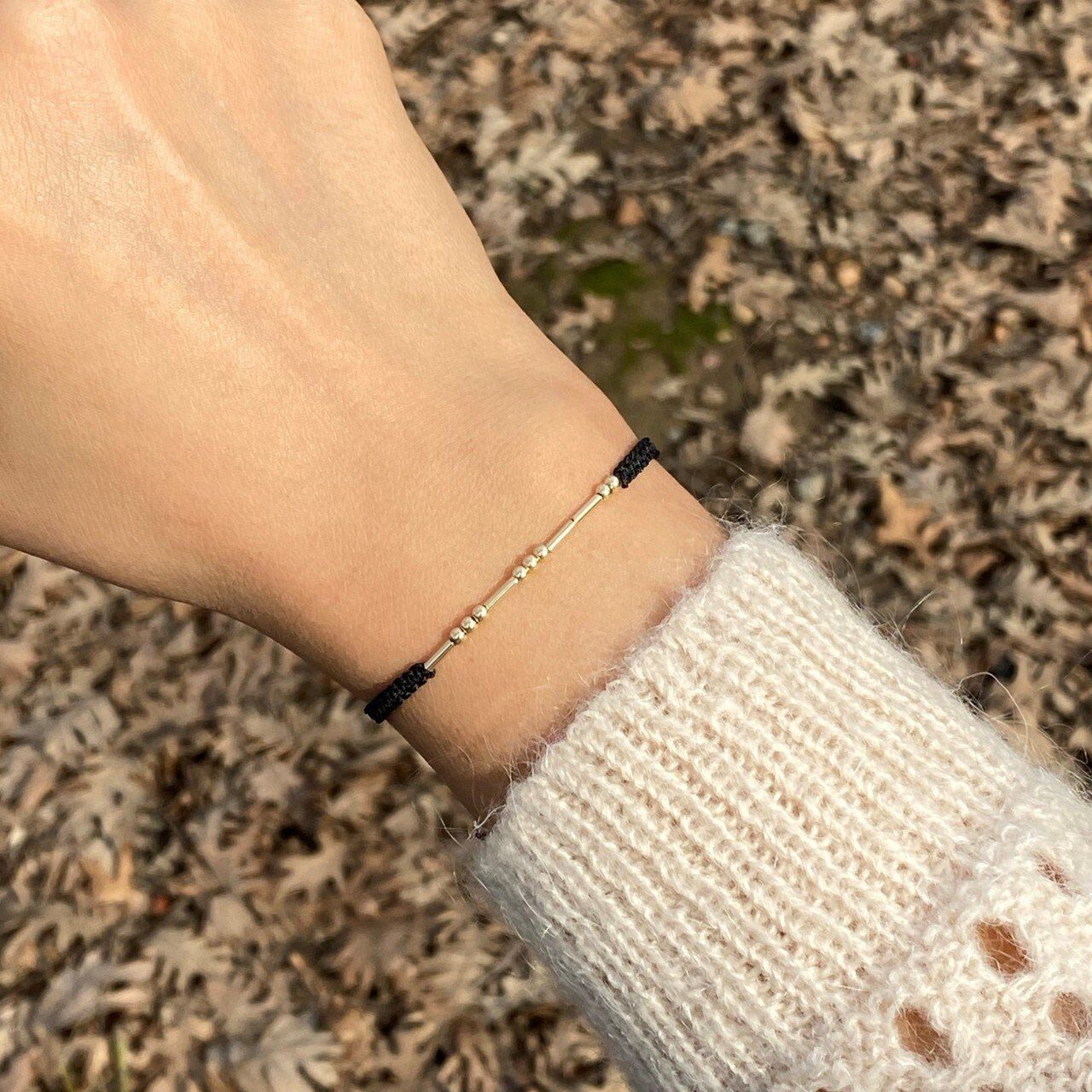 İstediğiniz isim ya da mesajın, nokta (●) ve çizgilerden (-) oluşan mors harfleri ile yazıldığı 14 ayar altın bileklik