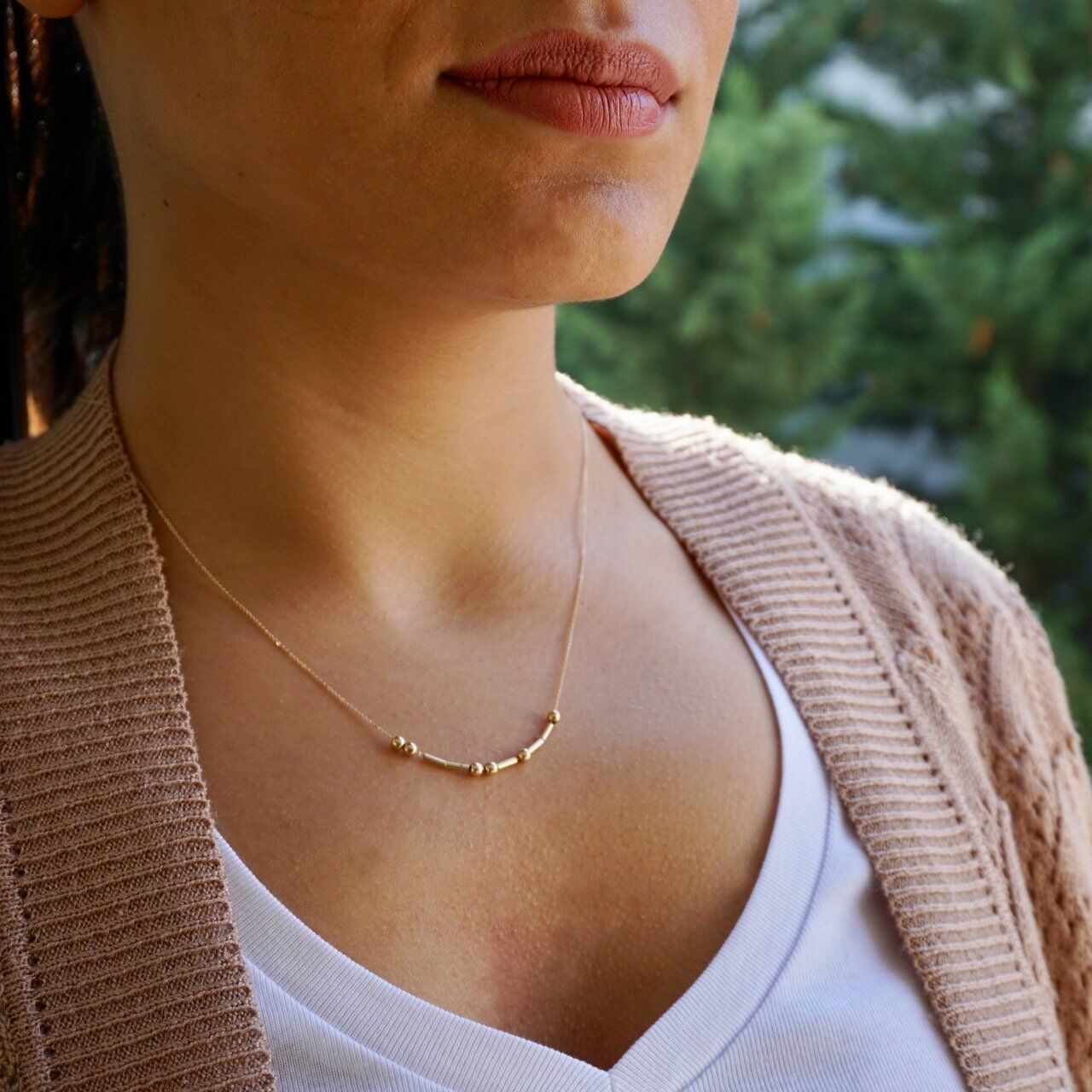 ● Üründe 2.5 mm 14 ayar altın boncuk ve 45 cm uzunluğunda 14 ayar altın zincir kullanılmaktadır.