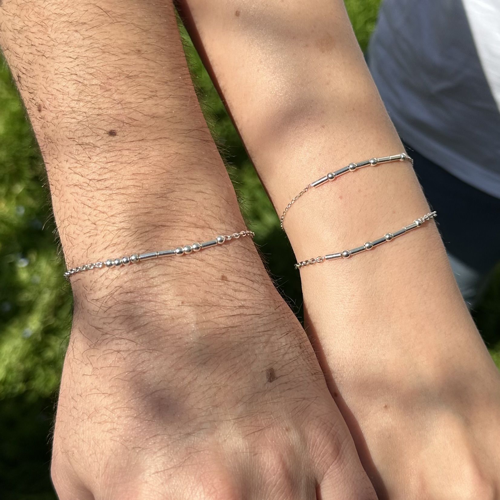 İstediğiniz isim ya da mesajın, nokta (●) ve çizgilerden (-) oluşan mors harfleri ile yazıldığı 925 ayar gümüş künye