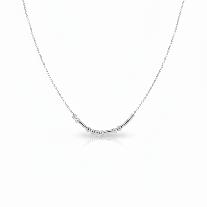 İstediğiniz isim ya da mesajın, nokta (●) ve çizgilerden (-) oluşan mors harfleri ile yazıldığı 925 ayar gümüş kolye